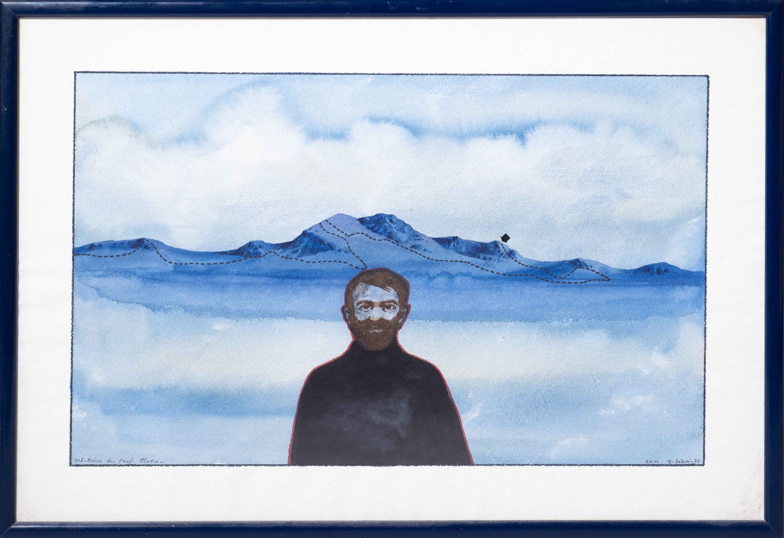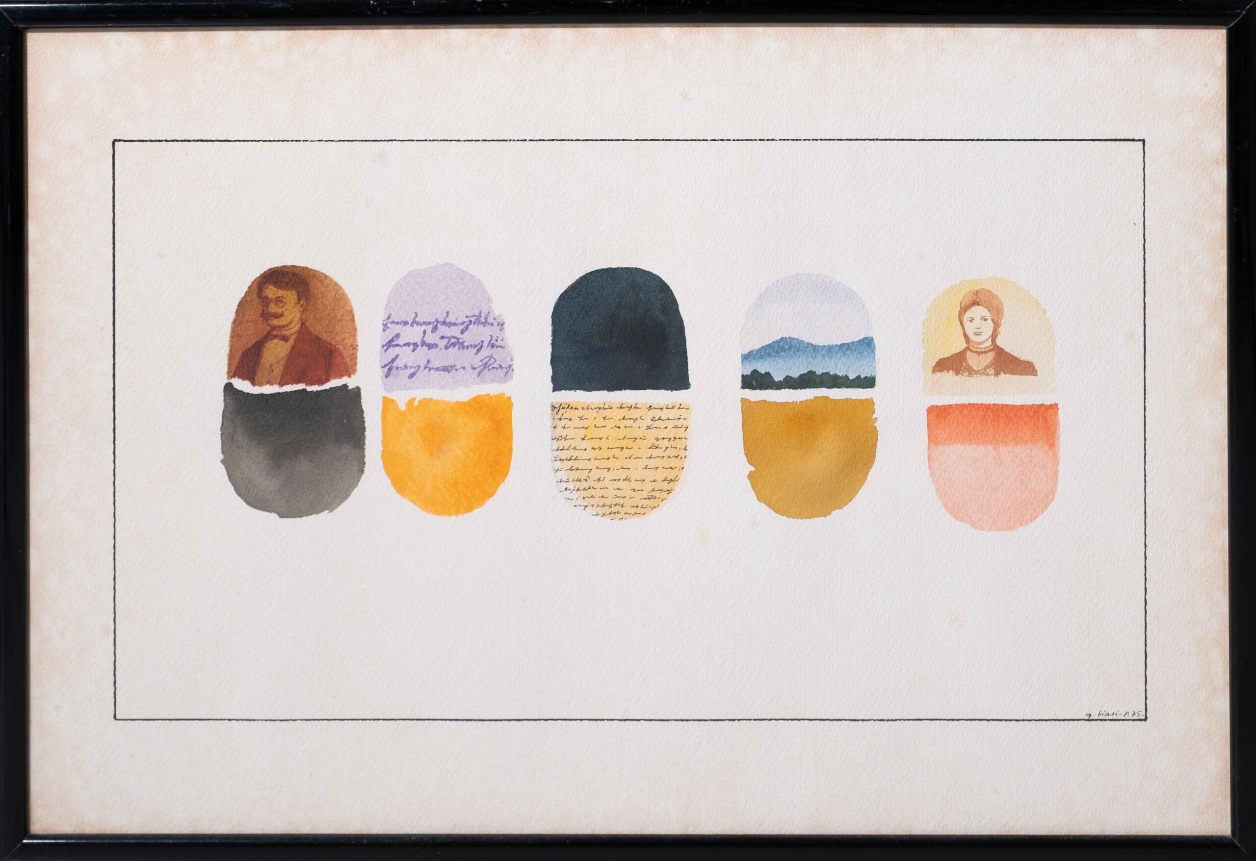 Biasi Guido. Senza titolo (Teste con montagna). 1974/75. Tecnica mista su carta. 40x20cm